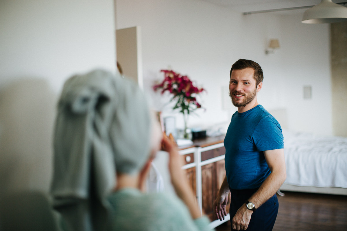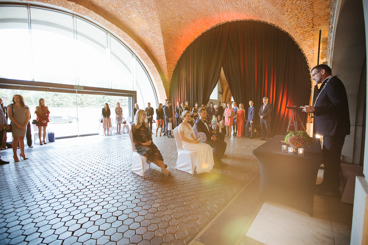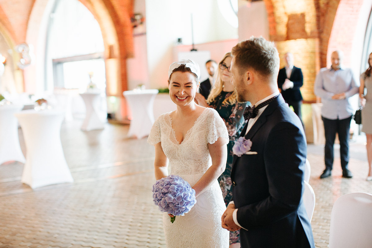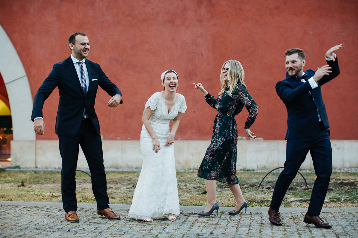 W Kasi i Andrzeju urzekła mnie spontaniczność i spokój. Po kilku rozmowach telefonicznych spotkaliśmy się na drugiej najlepszej pizzy w mieście. Było to jakiś miesiąc przed ślubem, kiedy nie wiedzieliśmy jeszcze, gdzie ten ślub się odbędzie. Jak widać, trafiliśmy do Arkad Kubickiego, które mimo obstawy BORu udało nam się opanować.