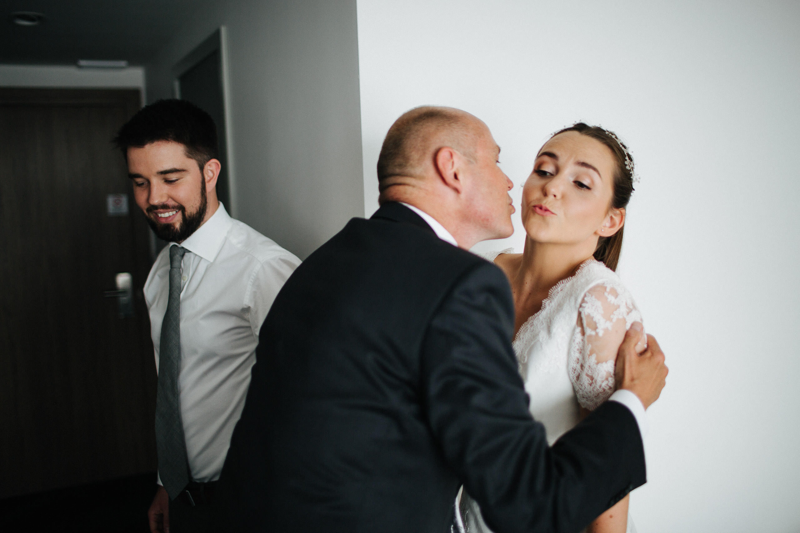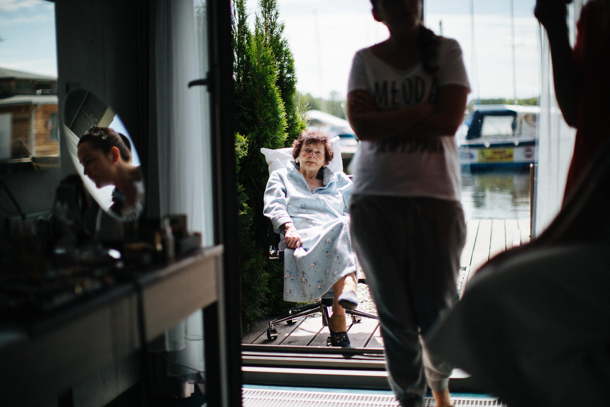 W dniu ślubu nieśmiałość Julii nie była już widoczna – taki urok sesji narzeczeńskich. Jak już pisałem, Hotel Przystań jest jednym z moich ulubionych miejsc do fotografowania. Hotele pozwalają pokazać na zdjęciach przygotowania nie tylko młodych, ale też dużej części rodziny; a kiedy potrzeba się odizolować dają pewną intymność. Polecam.