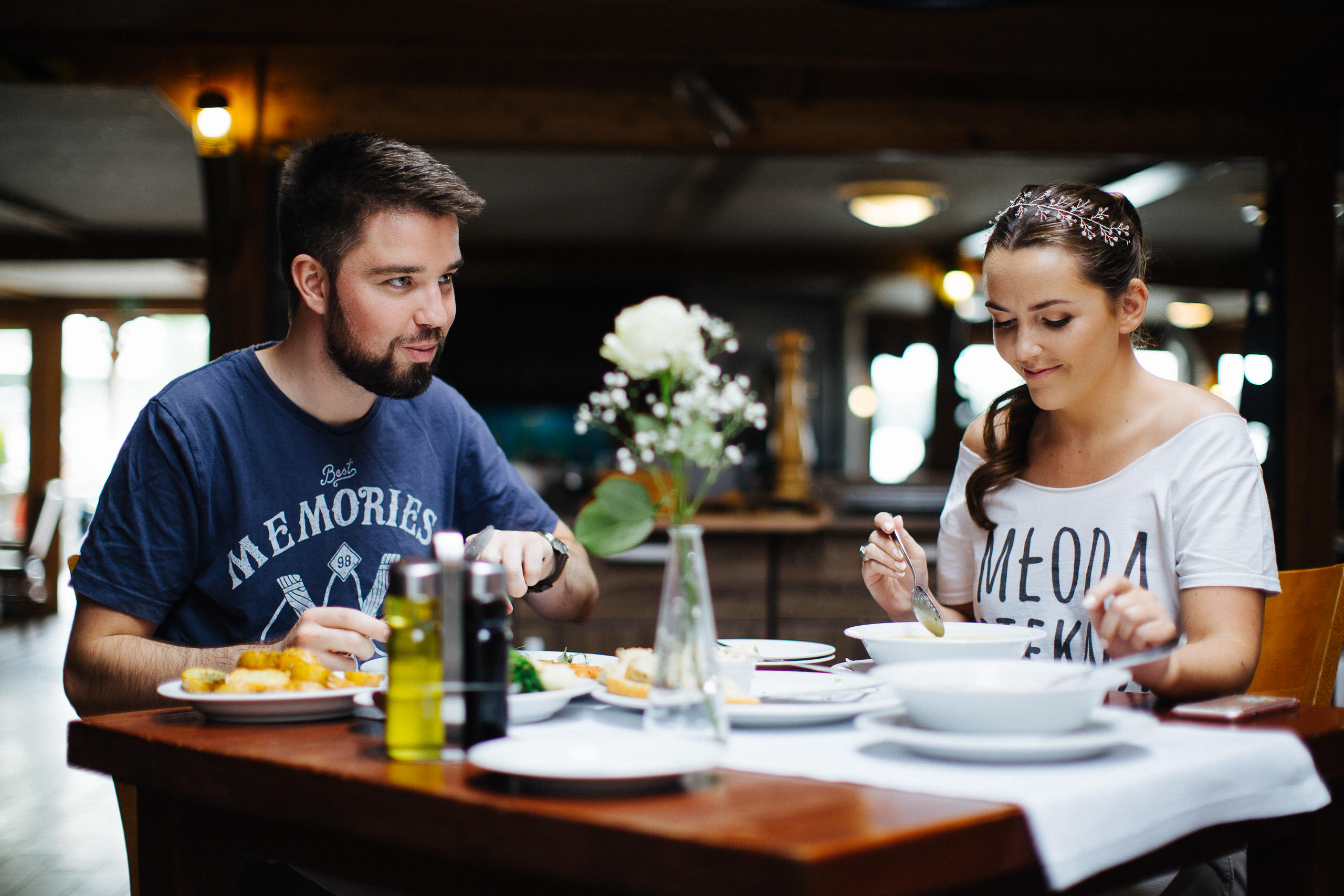 Julia i Karol powierzyli mi rolę fotografa na swoim ślubie w Hotelu Przystań w Olsztynie. Kilka miesięcy przed ślubem spotkaliśmy się na sesji narzeczeńskiej w Warszawie. Julia w niezwykle uroczy sposób peszyła się przed obiektywem, a Karol jak to Karol, miał wyj**ane.